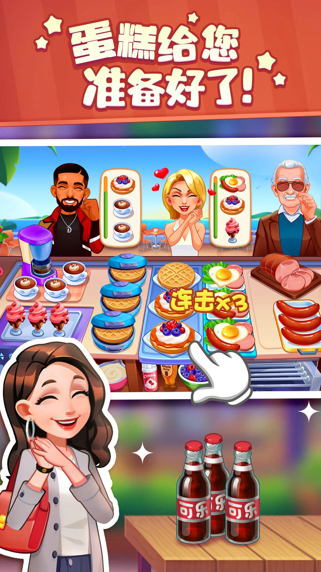 2、 你必须做出各种美味和特殊的菜肴,提高你的评级和声誉,并吸引新客户。