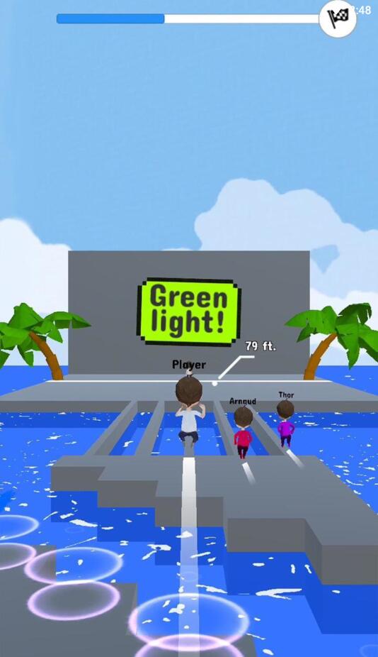 《Touch The Wall》是由VOODOO推出的一款全新的休闲益智类游戏,游戏玩法非常简单,按动屏幕使自己的小人停止活动,跑道的终点的人背对大家倒数,倒计时结束他会转过来,红色区域代表他的视线,当他的视线在你身上时,你不能活动,否则就会回到原点,跑道上还设有许多障碍,要注意躲避哦。