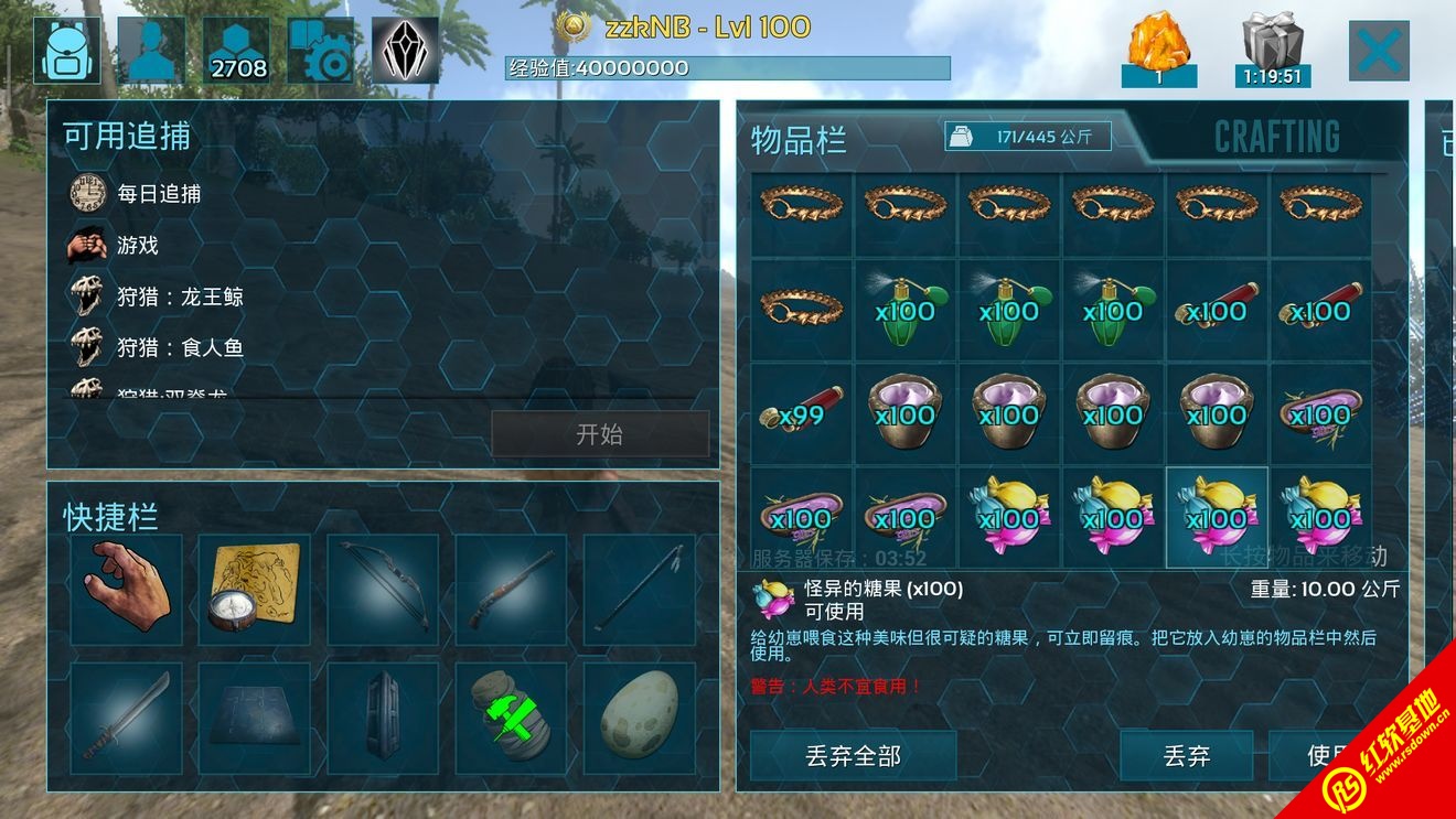 5、可以查看你的属性,如生命值、耐力、食物、水量等等,你应该时刻注意着自己的属性,不然可能会导致游戏的失败;