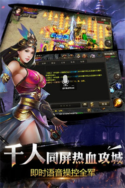 经典皇城战、公会战一触即发,千人同屏震撼攻城,重回激情飞扬的年代!先进的引擎技术、真实的打击感,战法道三大职业炫酷技能,手机上实现千人同屏攻城的盛况!组队击杀世界BOSS,百人团战,多重互动玩法加入即时语音,聊天求援战友更便捷!