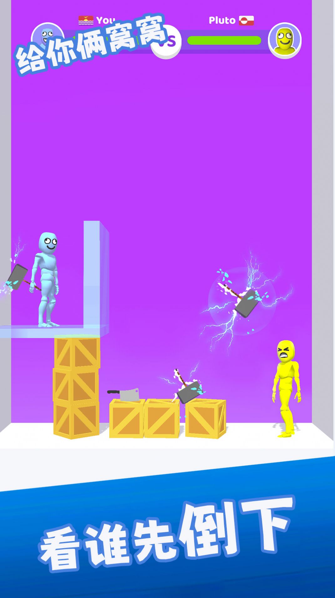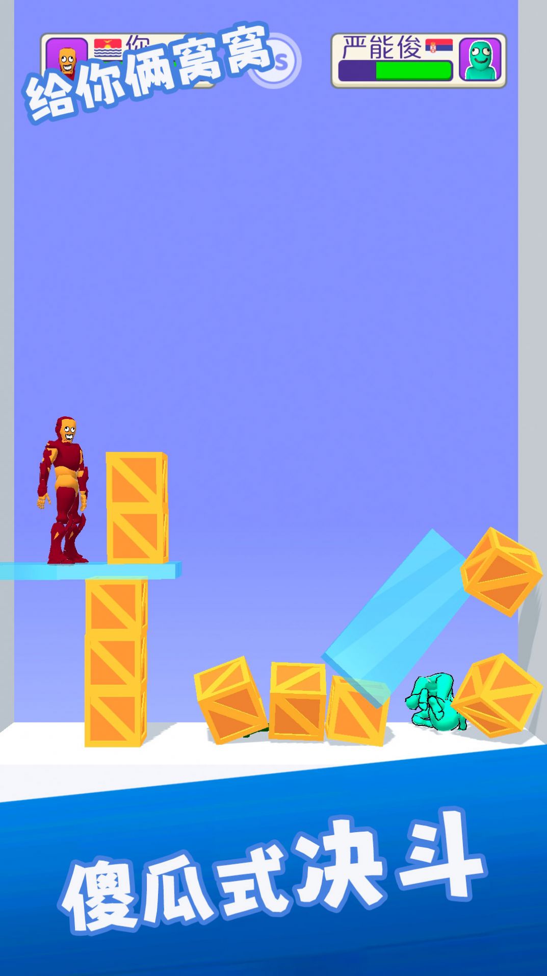 主要采用投掷的方式来解决对手只要顺利的砸中对方就可以获得相应的分数特别简单。不断消耗对方的血量血量先消耗殆尽的那一方就会输掉游戏所以也非常有趣。画面风格看上去十分精美不会出现画质模糊不清的情况里面有大量的物品可以用来攻击对手。