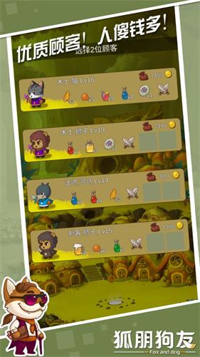 1、狐朋狗友大作战游戏是款创意休闲手游,多样化的角色在线战斗以及独特的冒险玩法,在不同的冒险中将会有很多奇特道具供玩家们自由的选择,喊上自己的好朋友来游戏吧下载狐朋狗友大作战手游!