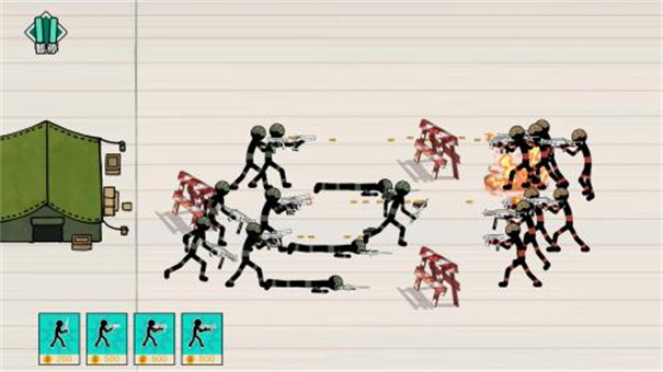 纸上谈兵火柴人版是一款非常有意思的策略塔防类游戏,这个游戏的背景是在纸上绘制的,不管是武器还是火柴人都是简单的手稿画,看起来非常的简约,有一点搞笑成分,在这里你要和你的队友一起打败对方的敌人,面对他们的猛烈攻击,你们一定要小心。