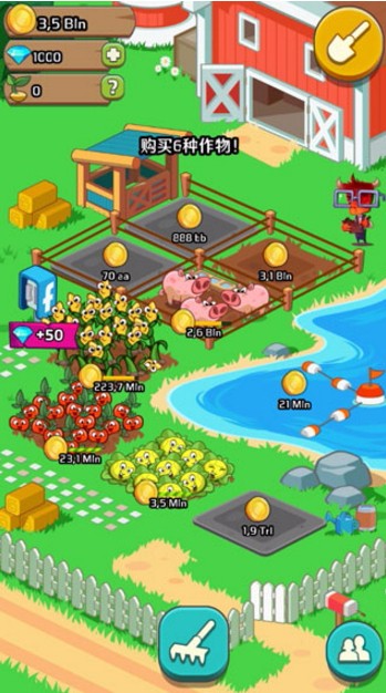 1、画面设计十分亮丽清新,轻松放置的玩法,开始经营你的农场,灵活去管理。