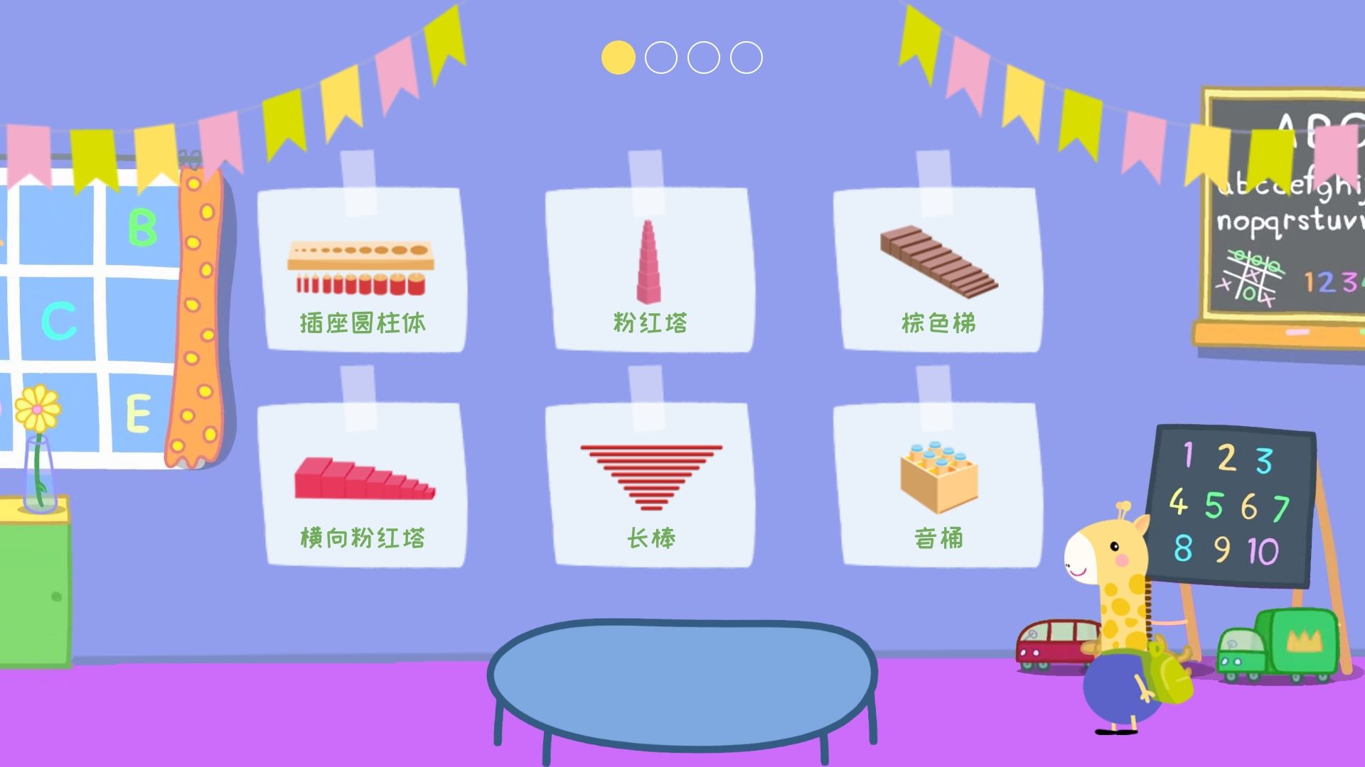 点击进入幼儿园,选择感官教具、数学教具、或科学教具;