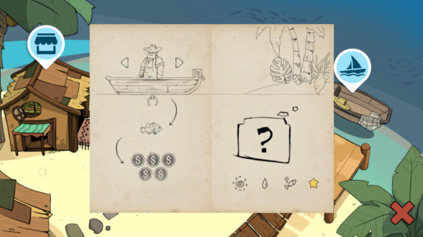 3、点击右下角钩子可以抛出鱼钩进行捕鱼,点击屏幕可以掷出鱼叉帮助捕获
