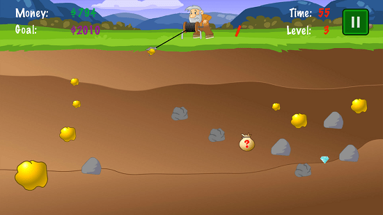 这款游戏当中的挖矿玩法非常的经典,而且加入了创新的元素,完成任务可以升级自己的工具,每一个关卡都有时间的限制,钩子的方向要不断的控制,非常锻炼玩家的手眼协调能力。
