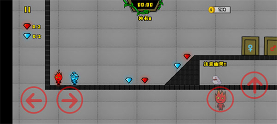 3、两个冰火人都不能接触与自己不同颜色的液体,对应不同的特性。