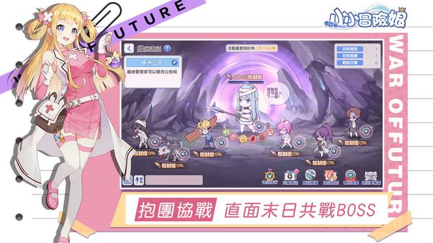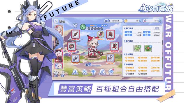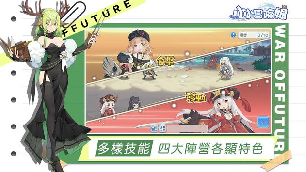 超人气萌系二次元手游《小小冒险娘》即将来袭!小小冒险娘是一款将即时战斗、休闲挂机、少女养成及多种社群互动玩法结合而成的二次元手游。小小冒险娘拥有丰富的世界观及少女人设,上百名性格迥异、萌点十足的少女等待指挥官安排出战!除了出色的游戏画面,小小冒险娘的游戏性也极具特色,佛系护肝挂机养成、策略组合阵容作战,配合即时战斗模式,绚丽技能、战斗特效刺激你的感官,带你体验全新的游戏乐趣及玩法!
