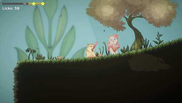 4、左上角玩家可以查看到舔次,在这里玩家需要控制自己的狗狗角色,利用技巧翻越各种高山;
