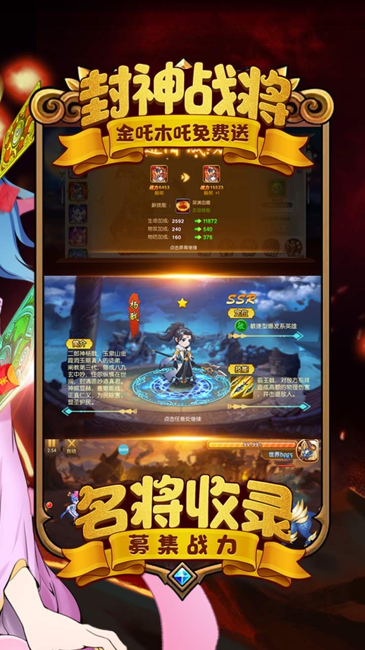 《真封神外传手游》集合了MMORPG游戏的精华,增加了大量的有趣玩法。日常、活动、福利、挑战、变身,无论你是什么样的玩家,在《二次元卡牌》中你都可以找到属于自己的乐趣。