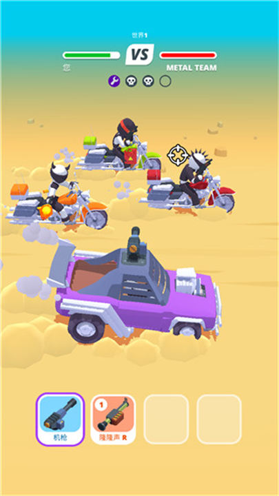 沙漠骑手免广告版中的规则十分简单,玩家需要利用熟练的驾驶技术在沙漠中与其他对手展开激烈的追逐,并利用武器瞄准敌方车辆开火,同时也要注意及时的松开躲避其他汽车的撞击,直至将所有对手消灭为止,抵达终点也会计算得分从而获取星级。