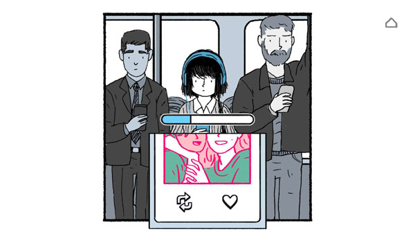 点击下方的切换和爱心按键可以度过主角上班路上的时间;