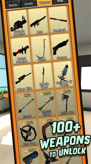 各种各样的武器道具可以给你的老板造成不同的伤害,同时也会造成不同的动画效果,如果你要想看到老板受痛苦的样子,那么使用不同的武器造成杀伤吧,非常有趣的一款游戏哦。