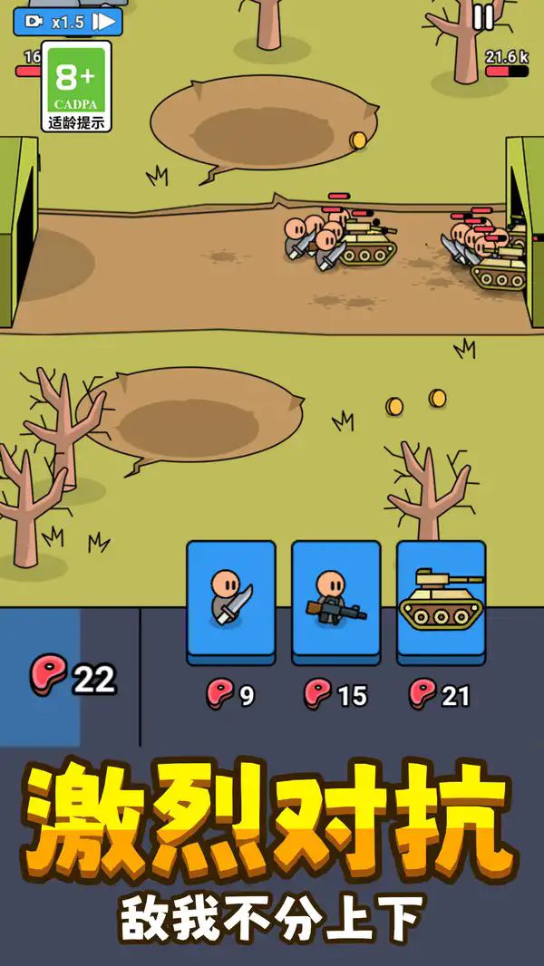 玩家可以召集不同类型的兵种,组建一支强大的战斗阵容,每一场的对决都是非常激烈,需要率领着自己的团队,和敌人开启热血对战,搭配了比较可爱的卡通画面,打造独特的火柴人形象。