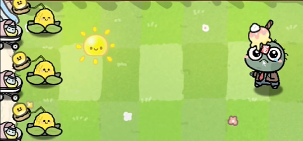 6、游戏画风采用了Q萌的幼儿园画风,植物和僵尸形象都得到了萌化,僵尸被击倒后还有掉眼泪的动画;