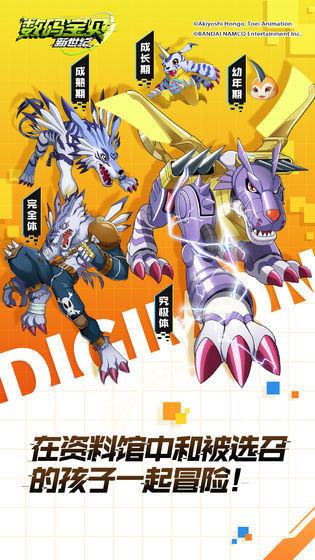 数码宝贝新世纪带来我家重新进入数码宝贝的世界中,作为被选中的孩子,玩家们需要收集更多数码兽。感受到数码兽们进化的乐趣,并通过不断的进化让数码兽获得更加强大的战斗力,在这个新世纪中,重新开启探险之路。