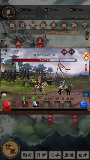 2. 升级武将:通过战斗和完成任务,积累经验值,提升武将的等级。