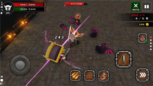 3、在战斗中,通过虚拟摇杆的方式控制角色进行移动,移动右侧的不同动作指令与敌人进行战斗;