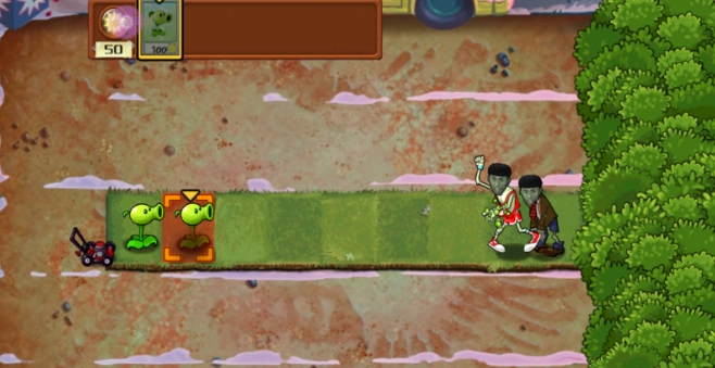 在第一排先种植一个玉米大炮,然后其余的就种植四发豌豆射手,哪怕僵尸的能力再强都没有办法越过这钟火力全开的阵型。要是最后面那一波僵尸比较多的话,那就使用玉米大炮进行轰炸吧,反正僵尸一个都逃不掉。