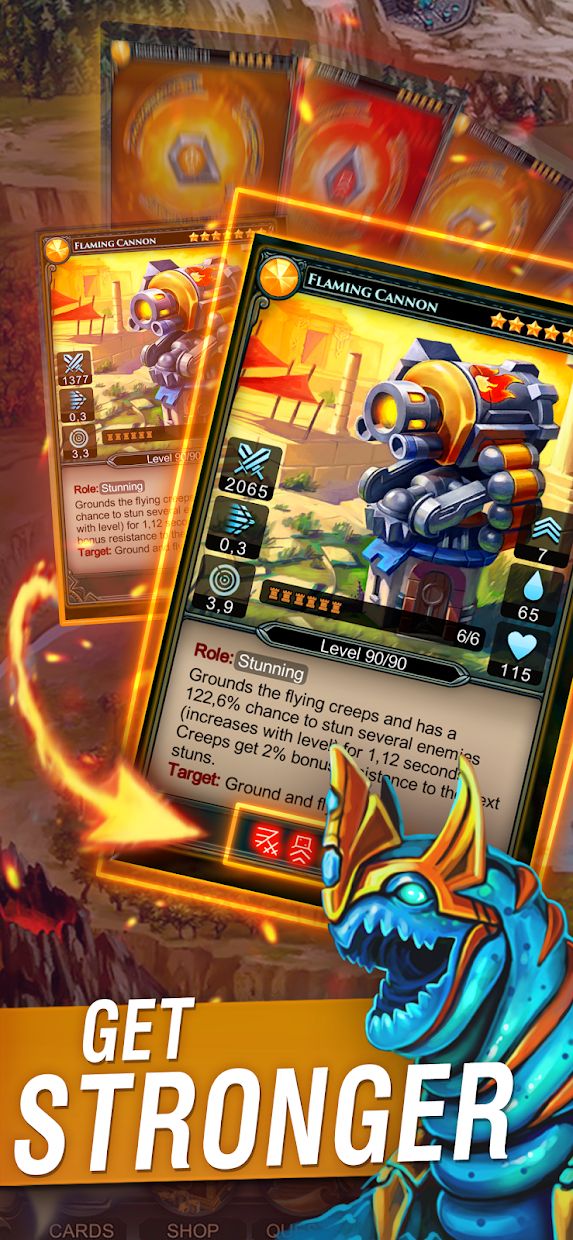 防御者2:塔防CCG 是为移动平台制作的最佳可收藏卡片/ TD塔防游戏之一的第二部分。在精心制作的3D幻想世界中,与不同类型的怪物和其他玩家进行的众多挑战性战斗正在等待着您。通过在最佳纸牌策略游戏中释放您的策划潜力,制定一项保护您的财产并争取新土地的制胜策略。