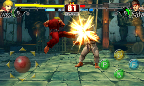 街头霸王4原名SF IV CE是一款由CAPCOM开发出来的童年经典街机格斗类动作游戏,玩家可以自由选择喜欢的人物开启挑战,左右两侧分别是控制杆和技能按键,搭配手指上灵活的操作你可以打出一次次完美的连招,讲究的就是一个快准狠,同时你还要随时注意自身和敌人的血条及时的进攻与后退。