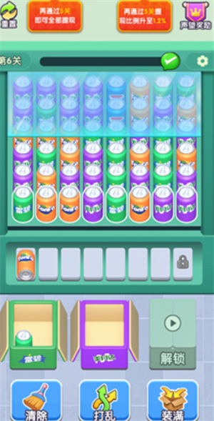 3、没有对应颜色的箱子时,罐子会在放置在预备区。