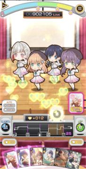 2.玩家要选择音乐,然后选择上场的偶像,根据游音乐的节奏去展示偶像的舞蹈,获得更好的分数
