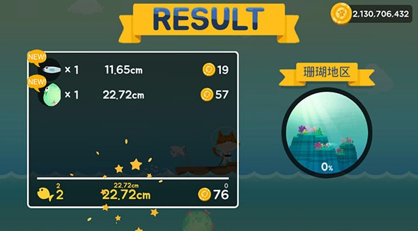 待玩家捕鱼结束后就能查看你所在海域的鱼群类型,另外还有奖励发放。