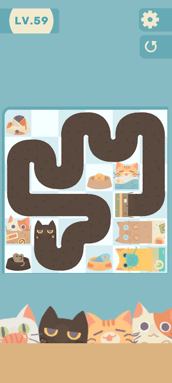 猫咪的行动是不可以有重复路线的,要确保每个小猫都能得到食物,使用了大量清新的色彩,有着可爱的画风。