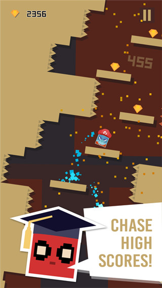 2. 道具使用:游戏中有多种道具,如火箭(直接飞跃50层)、吸铁(吸取附近的钻石)、帽子(多一条命)和钱袋(每个平台都有钻石)。