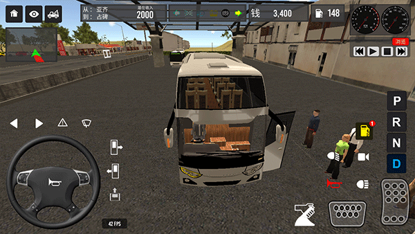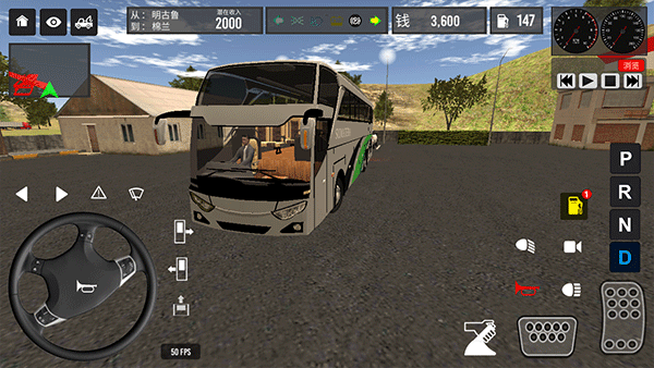 3、左边的方向盘控制方向,右下角分别为“手刹”“刹车”和“油门”,右上角是仪表盘和油量还有金钱,最后挂“d”挡就可以开动你的公交车了