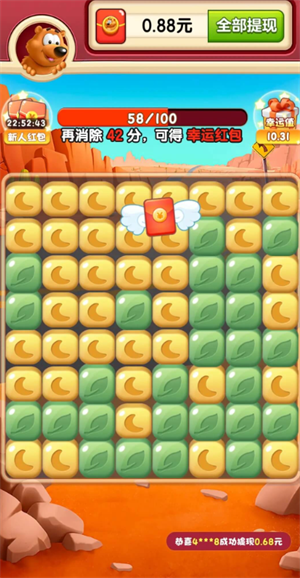 三消类型的手游大家都玩过吧,三消类的红包手游大家玩过吗,今天小编就为大家带来这款手游动物消消。游戏中消除的方块数量不断变多可以轻松获得红包福利,操作简单上手,玩家可以在这里感受到不一样的闯关消除乐趣,还能够通过不断消除闯关来获得红包福利。