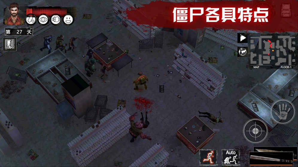 1、体力:体力为零时玩家战死。体力只有被攻击时才会流失,脱离战斗则自恢复。制造的攻击道具则可以更快击杀僵尸,也间接影响体力流失。