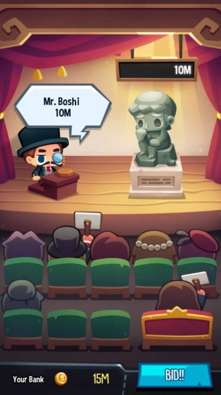 与其他同行拍卖行竞争, 为你的艺术馆购买你想要的艺术品! 争夺珍贵的文物, 并使用花哨的技巧击败其他人! 了解艺术品的流行趋势并展示它们以获得丰厚的奖励!