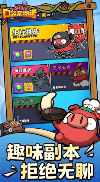 口袋宠物猪0.1折是一款塔防类游戏,玩家可以在游戏中通过丰富的挑战机制,感受不一样的游戏体验,将背包中的武器合成强大的神装,让你的猪猪战斗力狂飙,闯关再也不费力,另外还有超多趣味副本等你来解锁,快下载试试看吧!