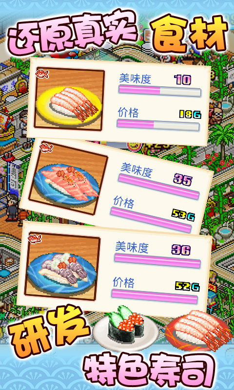 《海鲜寿司物语》游戏亮点: