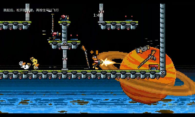 怪鸭乱斗最新版是一款非常有特色的游戏,它是一款横版的游戏,画风是经典的极简像素风格,在玩游戏的过程中,玩家需要控制角色进行数人的大乱斗,在不同的地图场景上,运用不同的道具和武器,使用不同的技能来打败对手。
