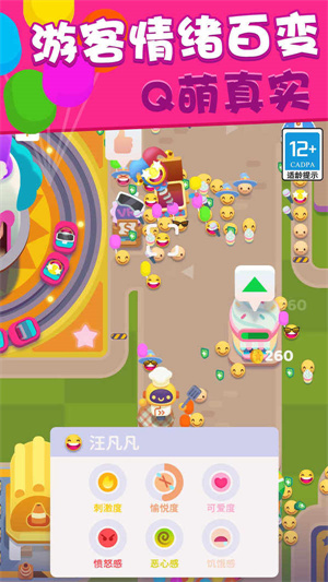 这款游戏的模式非常的轻松,玩家可以在游戏里经营一个非常大的游乐园,不断的给顾客提供精彩的游乐设施,从而提升自己的收入。