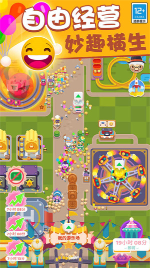 欢乐游戏城最新版是由ZeptoLab制作的一款建设游乐园模拟手游,游戏中玩家需要担任一项吸引游客、关照游客情绪的重要工作。通过自己设计建设并经营自己的游乐园,包括设计多样化的游乐设施和景观来吸引足够多的游客,赚取报酬后就能升级游乐设施。