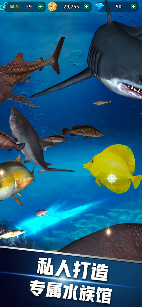 2.世界上的海洋可以自由加入钓鱼的乐趣体验,创造一个私人水族馆来吸引人们的注意力赚取金币;