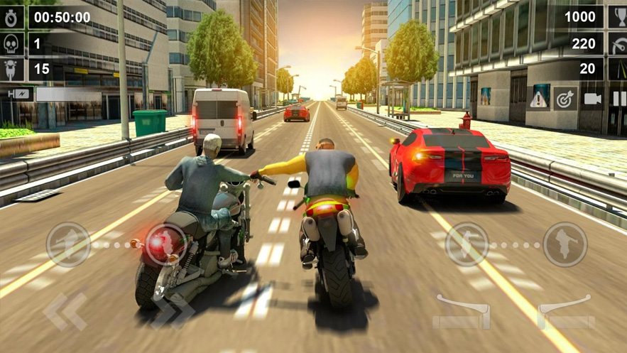 3、掌握骑摩托车的技巧和战斗来一起打斗,成为最路霸的摩托骑士。