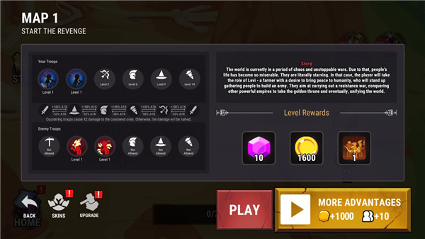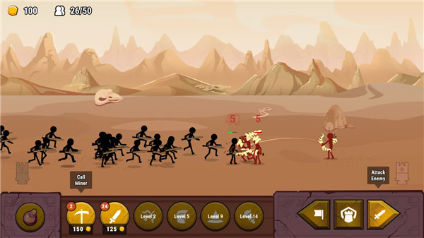 2)火柴人军队带你征战,建立王国并战胜敌人,成为火柴人战争王座的叱咤风云者。