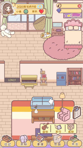 2.画面非常的温馨,能够随时记录每天的心情以及当前的身体状态,并且还可以和自己的宠物进行互动,倾听各种美妙的音乐。