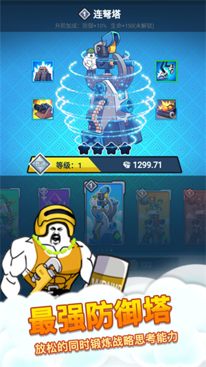 防御塔有四种形态,虽然形态和攻击方式有些差异,但是增加的属性其实是一样的,都是加10%的防御和150的生命值。要选择的话看个人喜好,我选的是连弩塔,感觉还是机关枪帅一点。这四种防御塔碎片是可以通过商店观看视频获得,入手难度不大,就是麻烦点要看会视频。