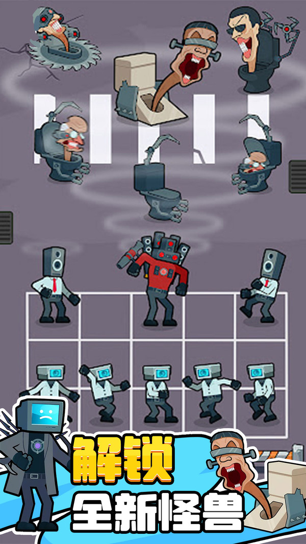 马桶人的冒险是一款马桶人冒险小游戏,在这款游戏中你需要通过合并的方式去建立自己的怪物军队,让他们帮助你完成战斗挑战任务,不断地合成能够让你得到超级强大的怪物士兵,感兴趣的小伙伴快来下载游戏体验试试看吧。