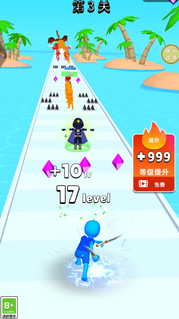 砍出一片天是一款趣味冒险小游戏,在这款游戏中你将会带上一片刀片,使用这片小刀不断击败敌人,提升自己的等级并且成功来到终点,感兴趣的小伙伴快来下载游戏体验试试看吧。