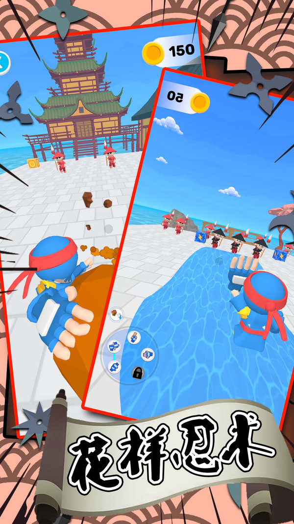 1、游戏拥有有趣卡通的画面,探索场景还能够解锁新的技能忍术,提升自己的战斗能力。