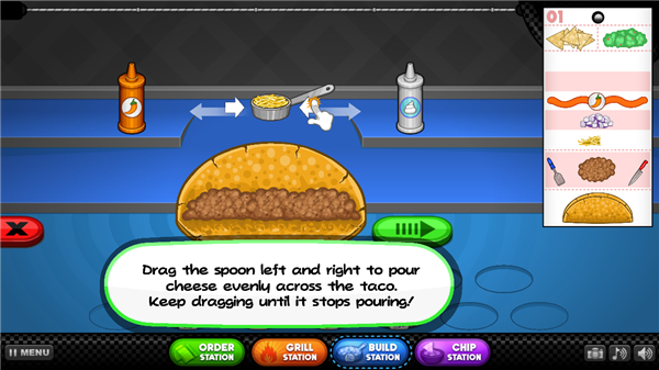 在老爹塔可店原版这款游戏中,玩家需要经营一家售卖塔可得店铺,大家可以通过使用不同的原材料来制作出口味不同过的塔可,在顾客来光顾的时候,你需要记住他们的需求并制作出符合要求的塔可,这样才可以获得相应的报酬。