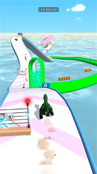 *收集道具和金币可以购买更好的装备和道具,让你的恐龙更加强大。